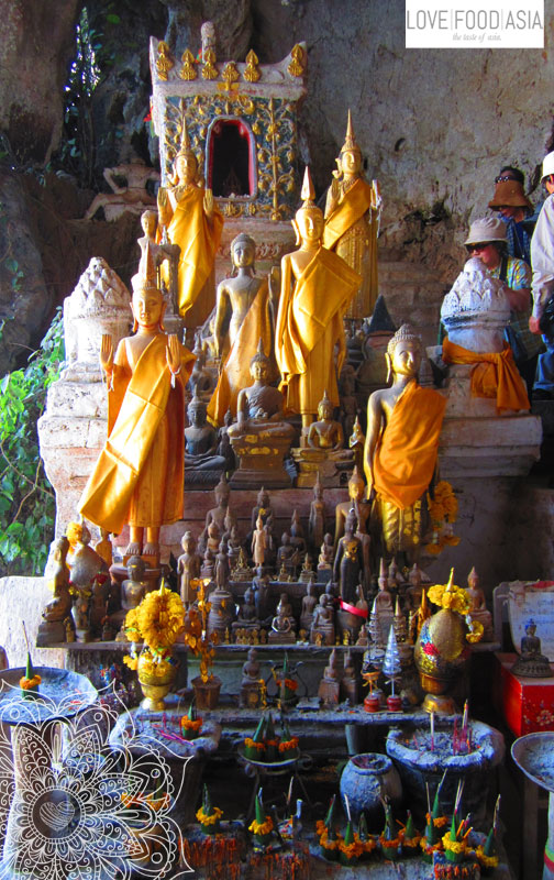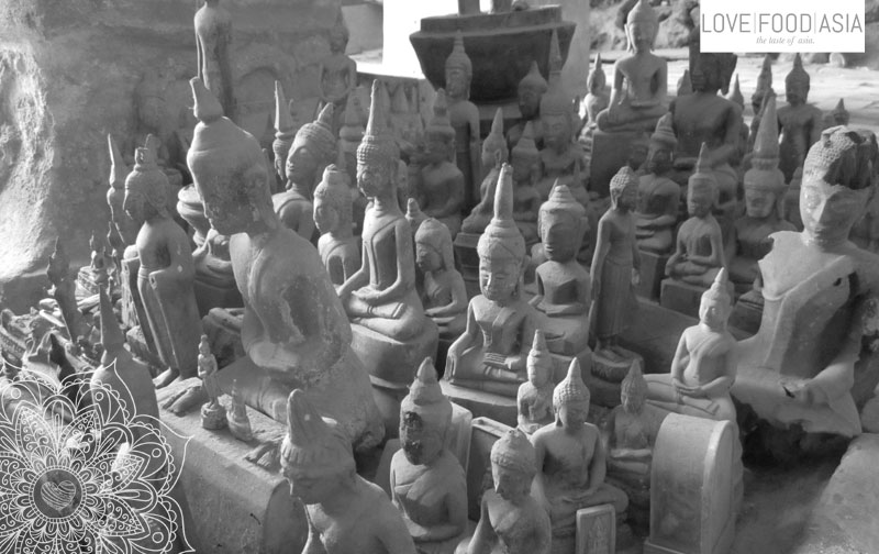 Nach dem Frühstart ging es nochmal in die Falle und schließlich um 10 Uhr in Richtung Promenade oberhalb des Mekong. Nach den typischen Preisverhandlungen mit den Bootsfahrern ging es für einen fairen Preis auf einem etwas längeren Fischerboot mit Außenbordmotor ging es flussaufwärts in Richtung Pak Ou Höhlen. Diese erreichten wir nach guten 1 1/2 Stunden. Die Höhlen selbst sind nicht gerade spektakulär, lediglich die über 1000 großen und kleinen Buddha Statuen in einer der Höhlen sind einen Besuch wert.
