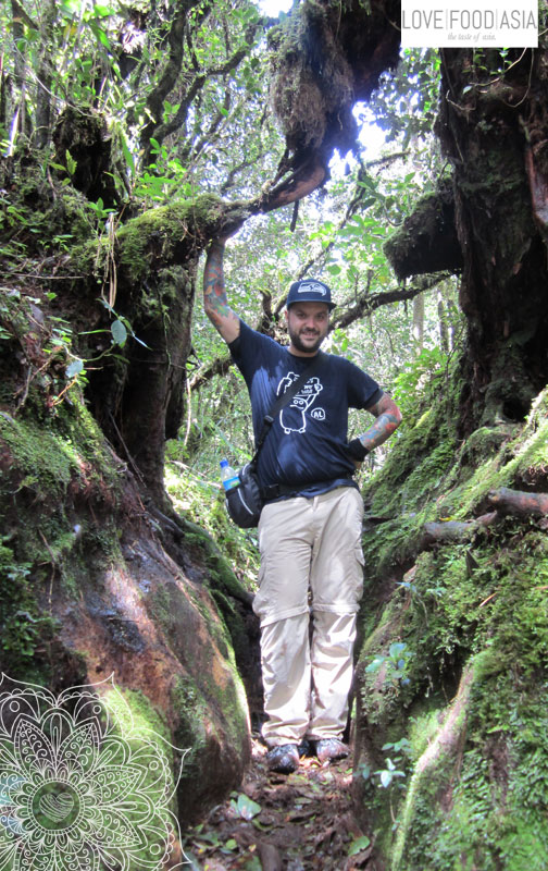 Wir liefen los und der Weg wurde bald zu einem matschigen Pfad der stets bergauf ging. Es war extrem anstrengend über die großen Wurzeln zu steigen und aufzupassen das man nicht zu tief in den Matsch tritt. Es hatte die Nacht zuvor geregnet und dementsprechend sah der Pfad eben aus. Wir wurden aber durch viele Natur voll mit exotischen Pfanzen entschädigt und nach 3 langen Stunden standen wir schließlich auf der Aussichtsplattform des Gunung Brinchang.