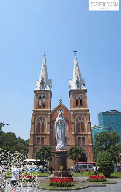 Danach gab es lecker Street Food in den belebten Straßen der Stadt. Wirklich leckere Pho bei Oma und danach noch einen starken Vietnamkaffee. Das Straßengetränk Nr 1 in Vietnam ist wie ein starker Mokka mit gesüßter Kondensmilch und wird auf Eis serviert. Ein später Wachmacher an diesem Tag. Danach ging es vorbei an der Notre Dame Kathedrale, welche wie fehl am Platz wirkt, weiter zum Saigon River wo ich dann erstmal ein kleines Schläfchen gehalten habe.