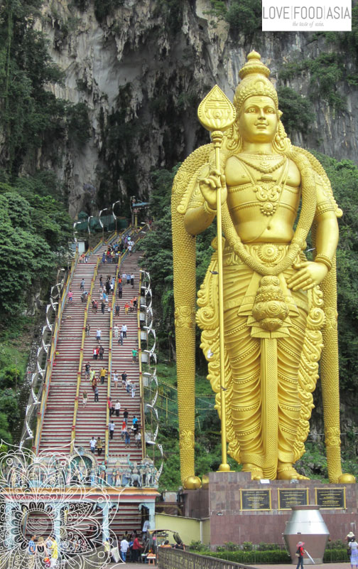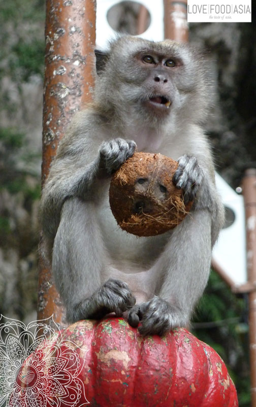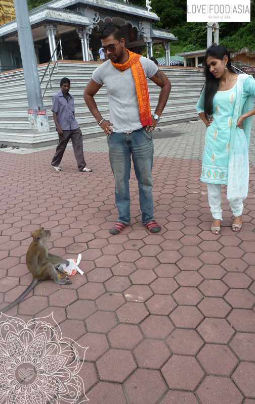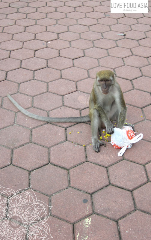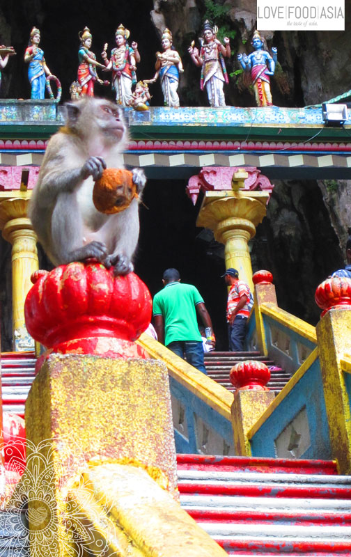 Das beeindruckendste ist jedoch die 42,7 Meter hohe Statue vom Hindu Gott Murugan. Sie wurde von 2003 bis 2006 erbaut und ist der Startpunkt wenn man die vielen Stufen zu den Höhlen erklimmt. Auf den Stufen wird man von vielen (neu)gierigen Makaken begleitet die diese Höhlen ihr zuhause nennen.