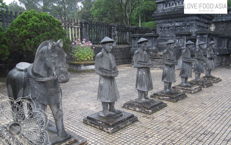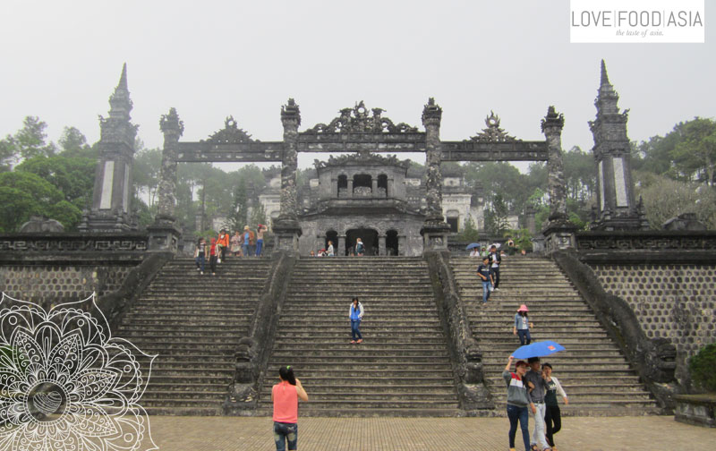 Am Nachmittag bin ich auf dem Roller zu den Kaisergräbern (Khai Dinh Tomb und Tu Du Tomb) gefahren. Es gibt davon noch einige mehr rund um Hue aber man kann ja nicht alles sehen. Vor allem Khai Dinh Tomb ist durch seine Mischung aus vietnamesischer und europäischer Baukunst ein ganz besonders sehenswertes Grab.