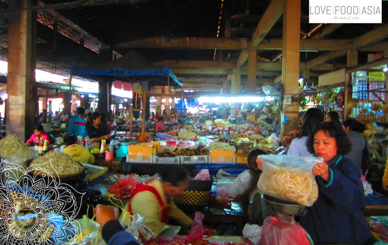 Heute morgen bin ich dann zusammen mit Aurelie aus Marseille zuerst zum großen Markt von Luang Prabang. Dort haben wir uns mit laotischen Leckereien und frischem Obst (wie z.B. einer Drachenfrucht) versorgt. Danach sind wir durch die Stadt gelaufen und haben uns alle Tempel und tollen Plätze in der Stadt am Mekong angeschaut. Wir waren am Wat Xieng Tong, That Makmo und an der Halle für den Pha Bang-Buddha in der Königlichen Residenz in Luang Prabang. Nach einem Mittagsschlaf am Mekong ging es weiter durch die westlichen Straßen von Luang Prabang. Der französische Einfluss aus der Besatzungszeit ist überall zu sehen und zu spüren. Sogar schmecken kann man es. An jeder Ecke gibt es Sandwiches auf frisch gebackenen Baguettes. Mein erstes Brot seit Anfang Dezember. Wow hat das gut geschmeckt.