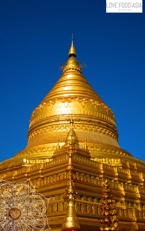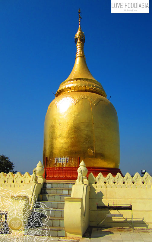 Die Tempelebene von Bagan mit dem Rad zu erkunden war klar die beste Möglichkeit. Die Temperaturen hier sind wieder deutlich höher als noch am Inle See, somit tut der Fahrtwind richtig gut. In Nyaung U ging es zuerst zur Swe-zi-gon Paya mit der riesigen vergoldeten Stupa, welche uns im morgendlichen Sonnenschein ihre volle Pracht präsentierte.