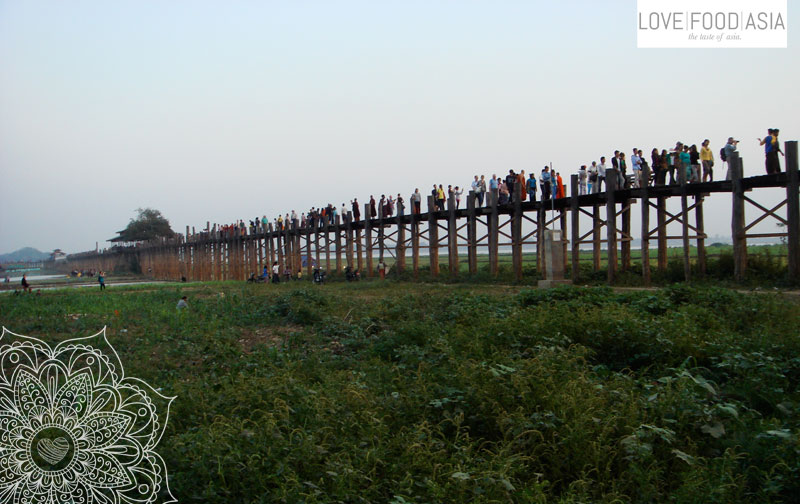 At least we drove to Amarapura where you can see of the most famous picture themes of Myanmar. The 1,2 km long wooden bridge where it is crowded for sunset and also for sunrise. Back in time you could see the monks crossing the bridge but today there are hundreds of tourists where you have to search for the monks in between. A tour guide waiting next to our taxi told me that it is like this since one year (This trip was in 2013). Tourism is good and evil in one thing. It brings the money but it destroys the history and tradition.