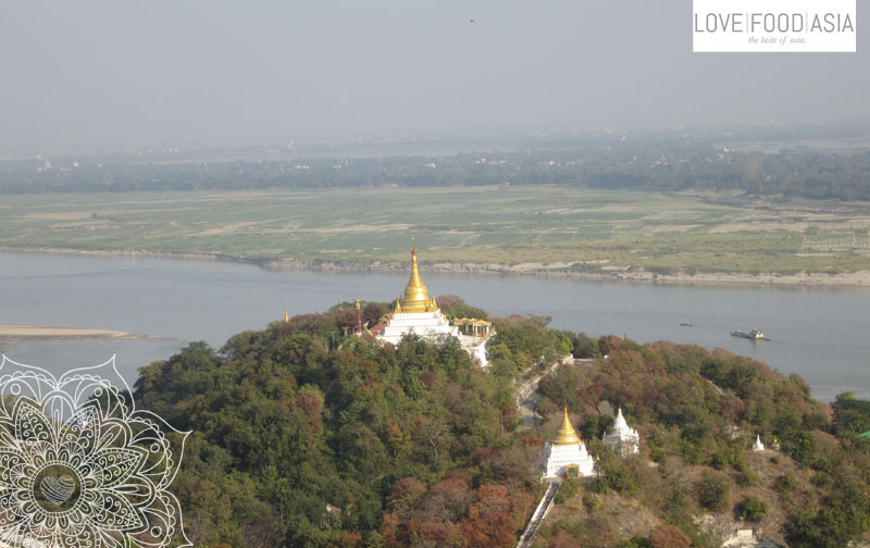 We came back to our taxi and drove to Sagaing where you can visit many pagodas. When you cross the bridge before you enter the city you can see uncountable pagodas everywhere. We visited the Kaungmudaw Pagoda. A beautiful place with a great view to the Irrawaddy river and the city of Sagang as well. And we met Barthèlèmy (the french guy) again and made an appointment for dinner in Mandalay.