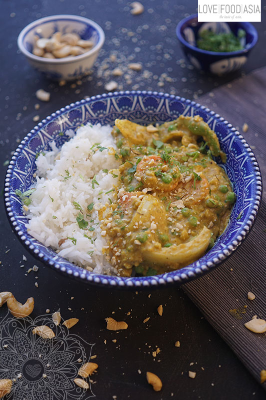 Normaly we use cauliflower, carotts and peas to cook this Korma. But green beans or broccoli also taste very good in this creamy dish.