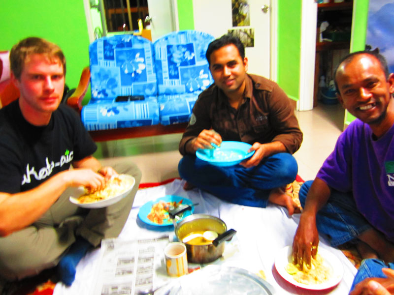 After cooking we took seat on the floor and ate everything with bare hands like they do in India or Bangladesh. It felt so good to have an experience like this. I don´t like to be in fancy restaurants or in expensive hotels. That´s the best way of traveling. To be with the locals and to eat with the locals.