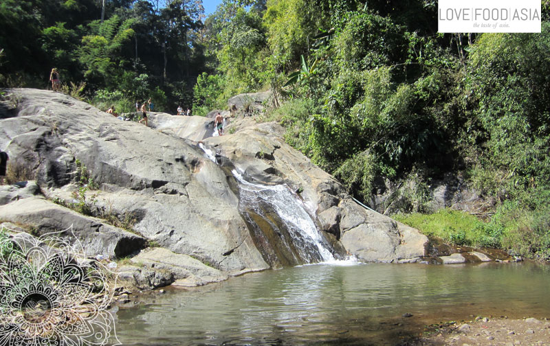 We met a nice guy from Bologna in Chiang Mai and we share our bungalow with him. Today we rented a scooter and we visited some (small and unimpressive) waterfalls, a viewpoint and the hot springs not far away from Pai. The hot springs are absolutely relaxing. I went there on my own ´cause the others had enough of them when they´ve been to New Zealand. On the top of the springs the water is 80 – 100 °C hot. You can buy eggs and some special nets at the entrance. Then you go to the top of the springs and boil them. At the bottom of the springs the water is “only” 34 – 36 °C warm and I relaxed in this little pools.