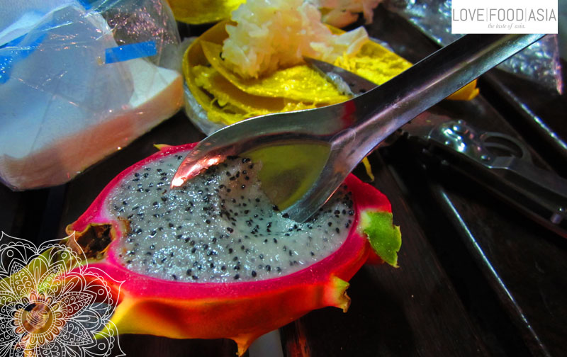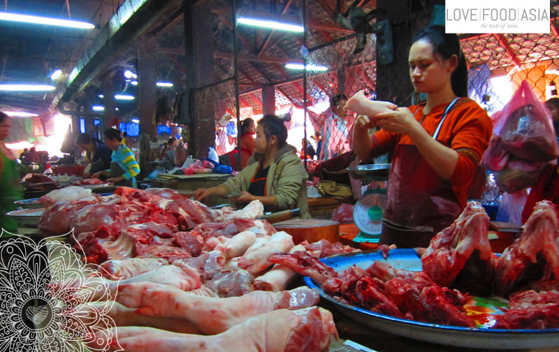 This morning I went to the big market of Luang Prabang with Aurelie from Marseille. From there we had a long walk though the streets of the historical city to visit the temples. We saw all famous temples like Wat Xieng Tong, That Makmo and the Buddhist Temple at Haw Kham (Royal Palace) complex. We went down to the Mekong and had a nap in the shade. After the nap we did some more sightseeing and you can see and feel that the French have been to Laos once. And you can taste it. Taste it? Yes. In Laos you can find fresh baked baguettes. My first bread since December. Wow. The taste was amazing.