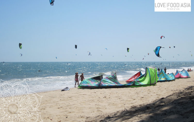 My first stop on my way from Ho Chi Minh City to Hanoi was Mui Ne. The small village is a kitesurfing paradise on the coast of south Vietnam. You can find long sandy beaches, good food and the red sand dunes nearby. This morning I took the bus from Saigon to Mui Ne and when I arrived at noon I realized that the former fisher village is full of Russian tourists. Every sign is written in Vietnamese and Cyrillic script. Everywhere you stand or walk you can hear Russians speaking. That’s not a problem for me but you can see that the locals did everything that the Russian tourists and kite surfers are felling very well in Mui Ne. You can find bars next door to fancy restaurants, hotels and clubs where you can party all night long.