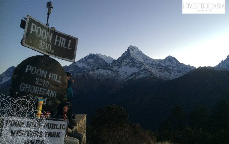 On Poon Hill you can find a new build wooden platform. What for? To be honest: You have a wonderful view and the sunrise at Poon Hill is really special. Because of the sun is shining over the mountains in the east exactly to the top of Mt. Annapurna I on the opposite side in the west. But it´s hard to enjoy the moment. People up there were screaming when the sun started to rise. What the hell? Haven´t you ever seen a sunrise?
