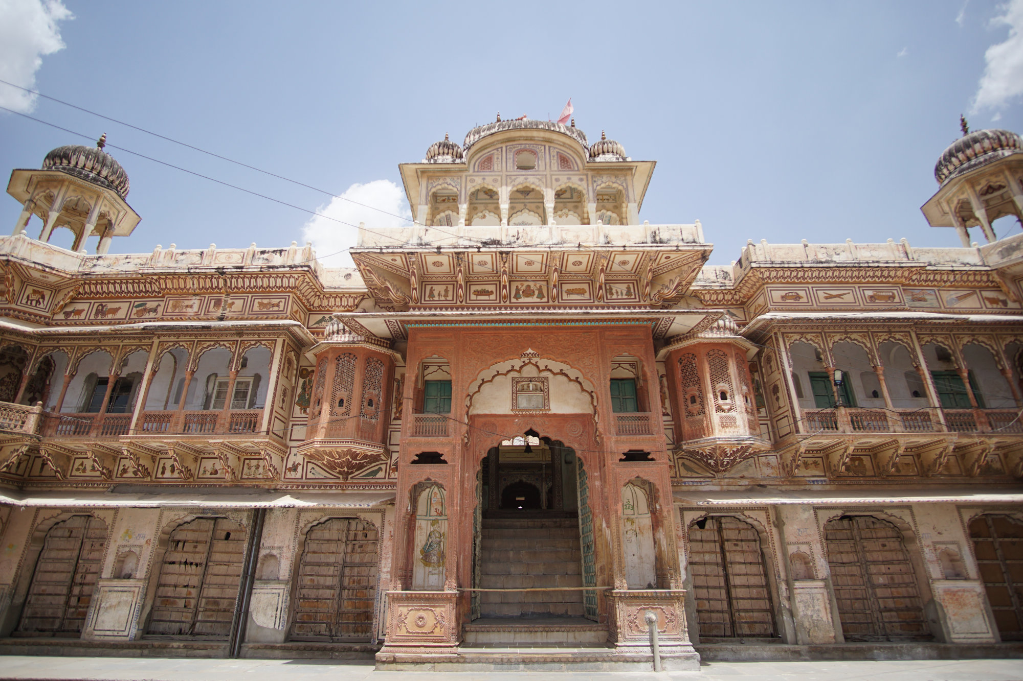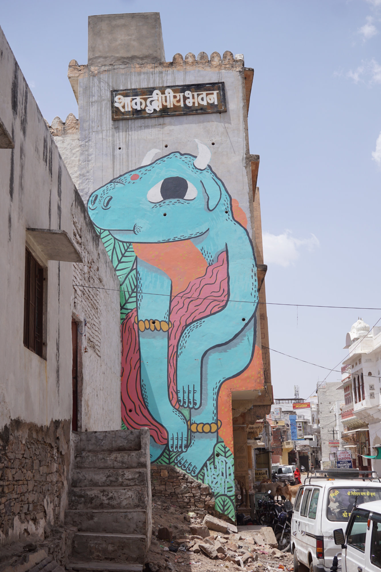 The Brahma-temple in Pushkar has a structure that dates to the 14th century, partly rebuilt later. This temple is also a main sights next to the lake. Brahma is the creator god in Hinduism. Brahma is traditionally depicted with four faces and four arms. Each face of his points to a cardinal direction. Many ceremonies and celebrations are held in the temple. Normally it is very crowded around this temple. But there is much more to see in Pushkar. Of course there are much more Hindu temples but we also found real good street art in the streets. A walk in the side streets is worth a walk.