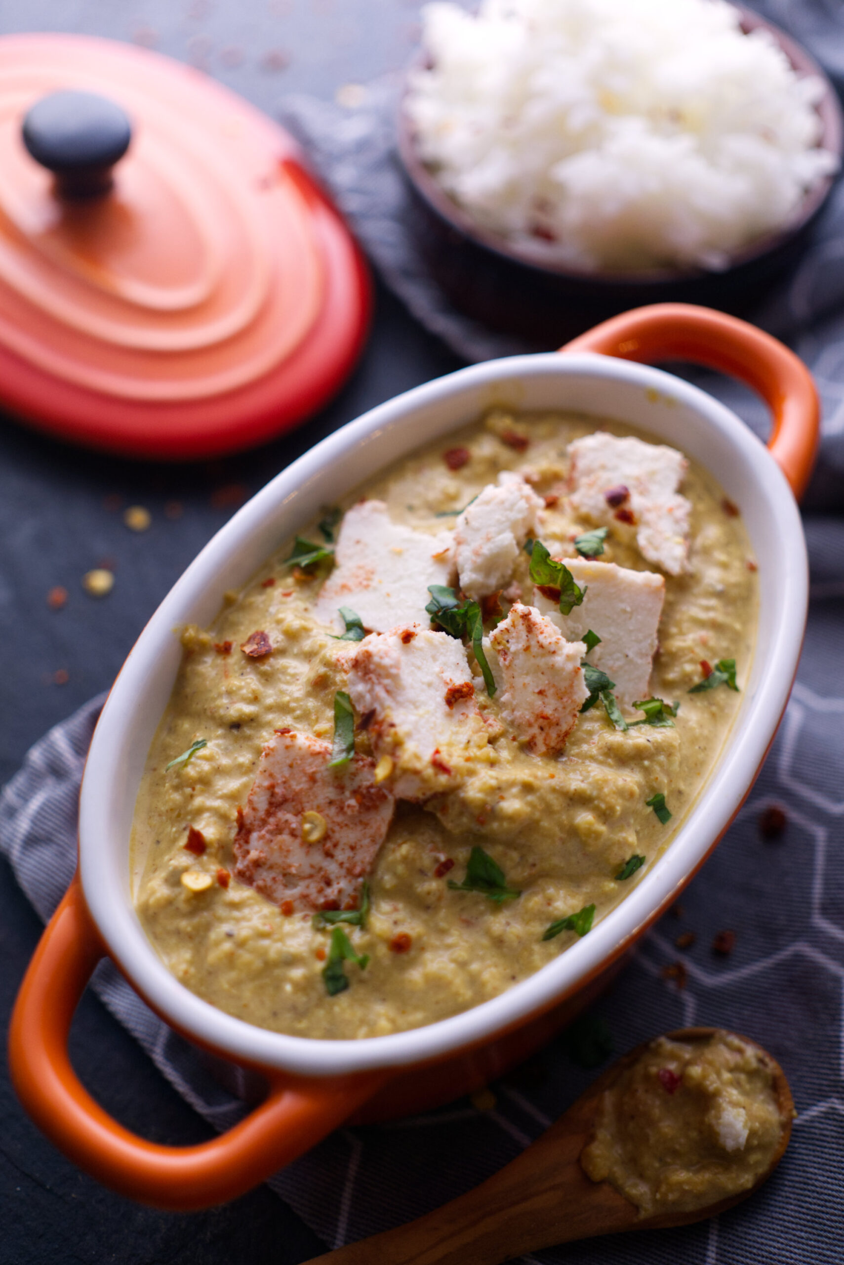 At the end add paneer cubes and heavy cream. Stir gently and and shut down heat. Serve with fresh coriander or mint leaves next to rice or roti.