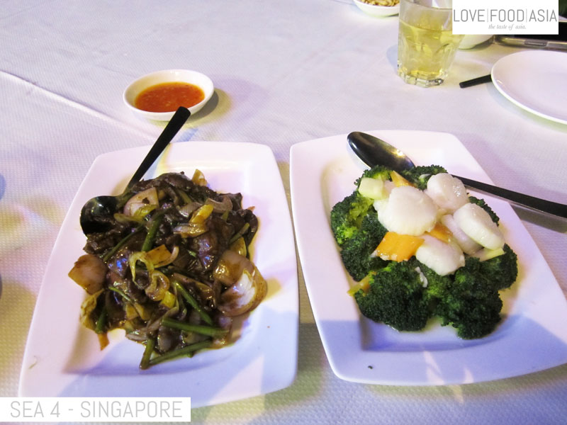- Stir fried broccoli with scallops.