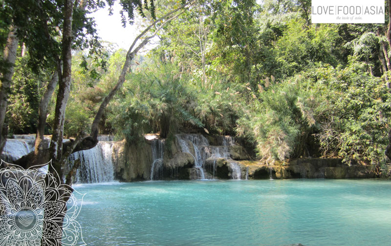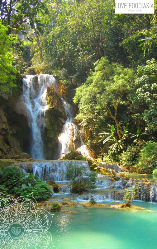 Today I went out with Olga, Lucasz, Aurelie, Marco from Florence und 2 French guys to visit the Kuang Si Fall 32 km away from Luang Prabang. This trip was absolutely wonderful. The main waterfall is one of the best I´ve seen is Asia so far. The water was turquoise like the sea. We all brought our swimming shorts or bikinis. We jumped into the ice cold water and had a picnic next to the water. On the late afternoon we drove back to the city.