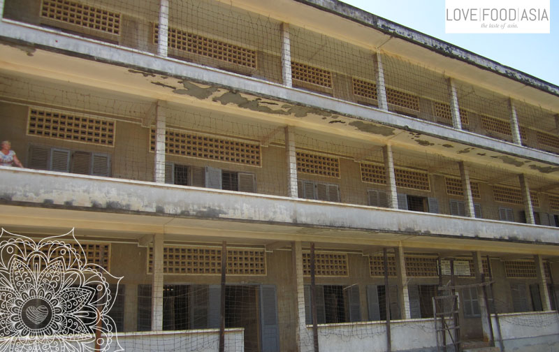 So I started a long walk though the city of Phom Penh. This city is full of street food stalls and I will try my best to get 100% well as soon as possible. For me the best way to see all the secret corners of a city is walking. On my way I had a look for the locals and for good street food stalls. I visited the independence memorial that has its place in a nice park in the center of Phom Penh. There are not many skyscrapers in the city and you can see lots of old colonial buildings everywhere. After two hours of walking between the heavy and chaotic traffic I had my first light steet food snack and entered the Tuol Sleng Museum.
