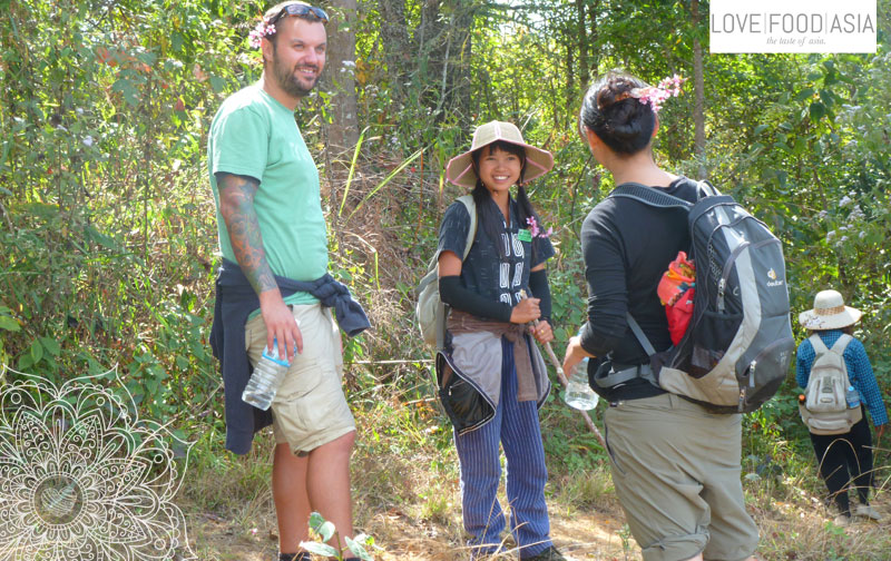 Right after the break we hiked through the beautiful landscape with lots of bamboo, pine trees and lots of unknown plants. We passed a school in a small village called Hin Khar Kine were the boys and girls came out and had a look at our small group. Within a few minutes 3-5 children took my arms and had a look at my tattooed arms. The kids were part of the Palaung ethnic group and it seems like they haven´t seen tattooed arms like mine before. A wonderful experience.